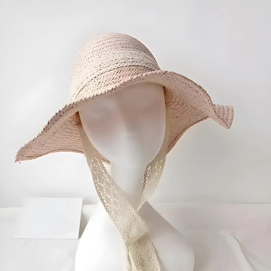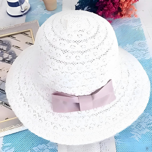 Chapeau de plage en dentelle et ruban