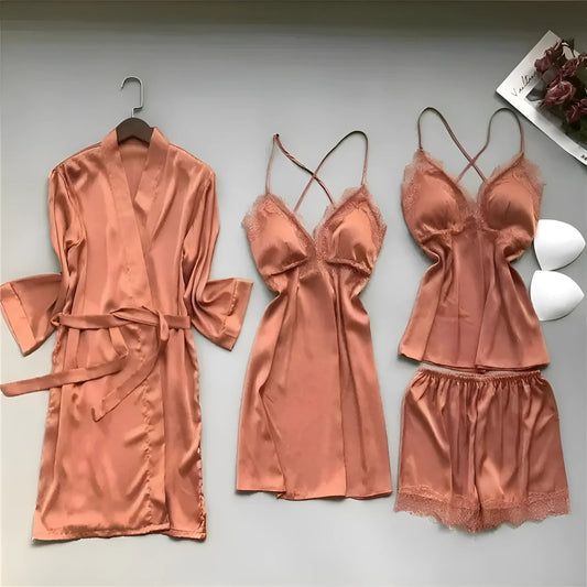 Si vous aimez la façon dont tout s'emboîte parfaitement, essayez l'un des ensembles de couchage que nous proposons . Selon l'ensemble, vous pouvez trouver un pyjama confortable avec un short, une robe de chambre parfaitement assortie, une chemise de nuit et même un pantalon long dans la même teinte et avec des décorations. Grâce à la grande variété, vous pouvez adapter les ensembles de couchage pour femmes présentés sur cette sous-page à vos besoins. Nous garantissons un large choix de couleurs, de motifs, ainsi qu'une variété d'ensembles . Décidez vous-même quels éléments sont cruciaux pour vous et choisissez un ensemble de couchage en satin.