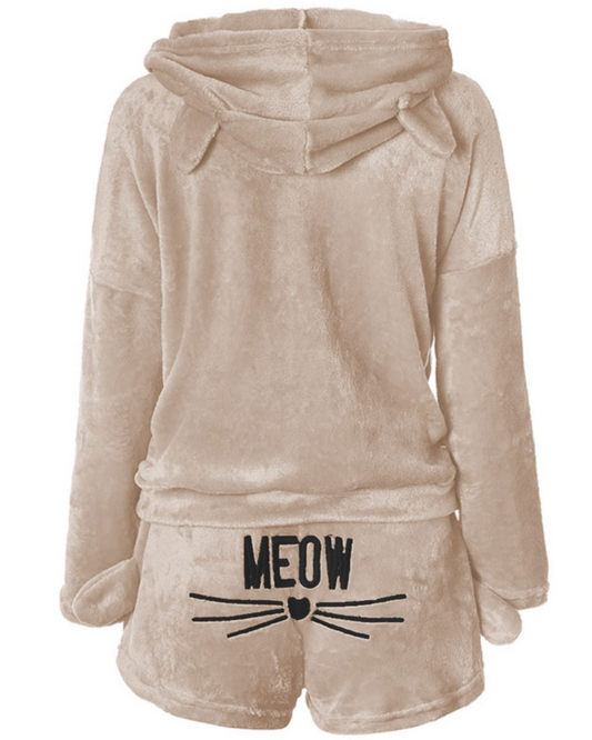 Ensemble de vêtements d'intérieur pelucheux avec motif de chat.