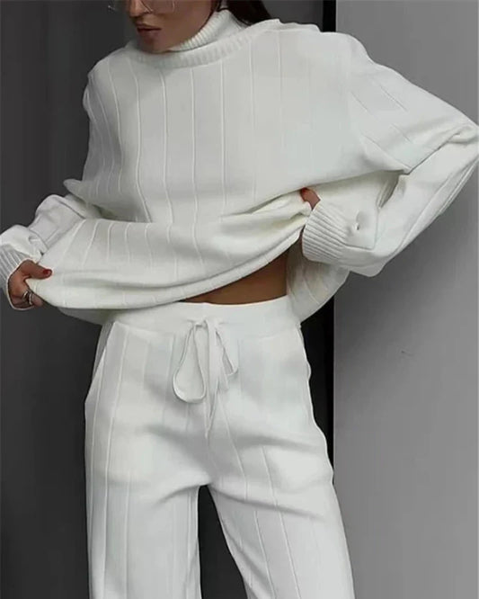 Ensemble confortable long de vêtements d'intérieur avec col roulé