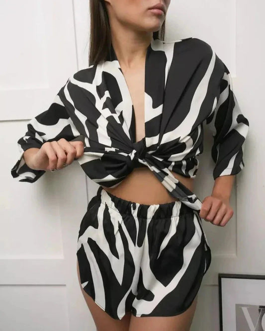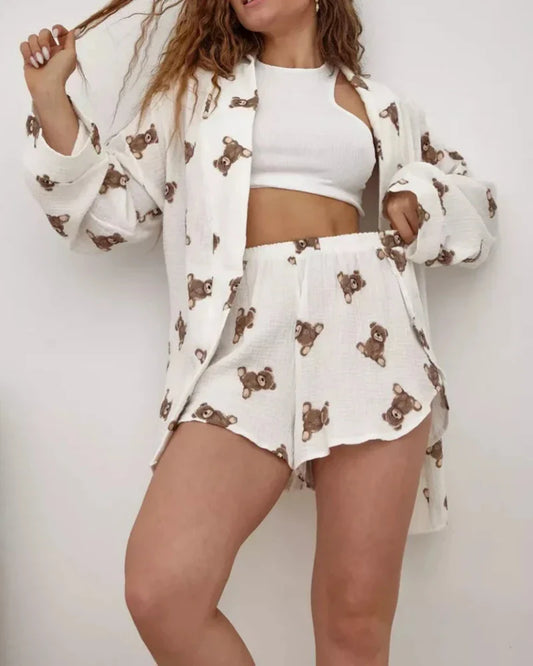 Ensemble court de vêtements d'intérieur avec chemise léopard