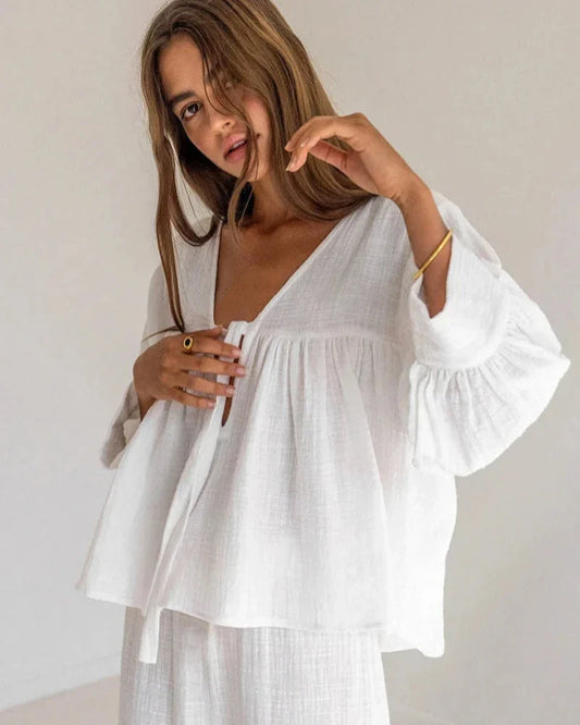 Ensemble long de vêtements d'intérieur avec des boutons décoratifs