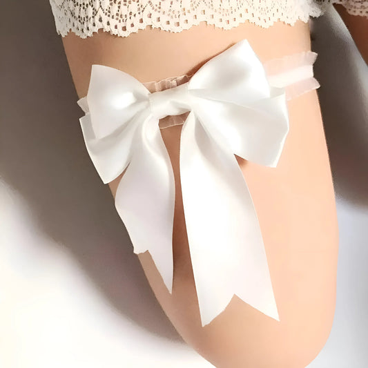 Classic Lace Garter with Bow in French is: "Jarretelle en dentelle classique avec nœud".