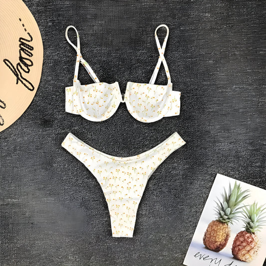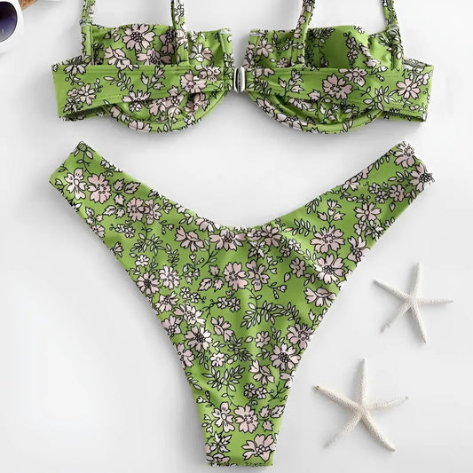 Bikini à imprimé floral en deux pièces avec soutien-gorge découpé