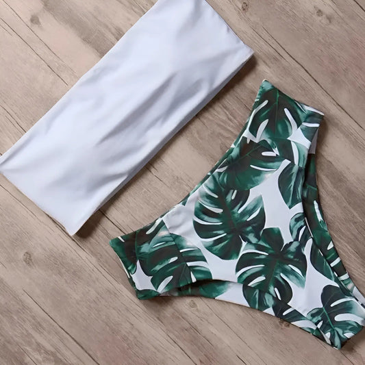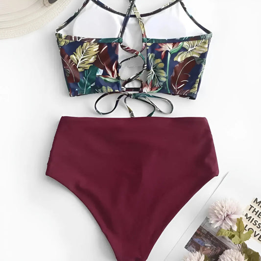 Maillot de bain deux pièces taille haute avec imprimé tropical