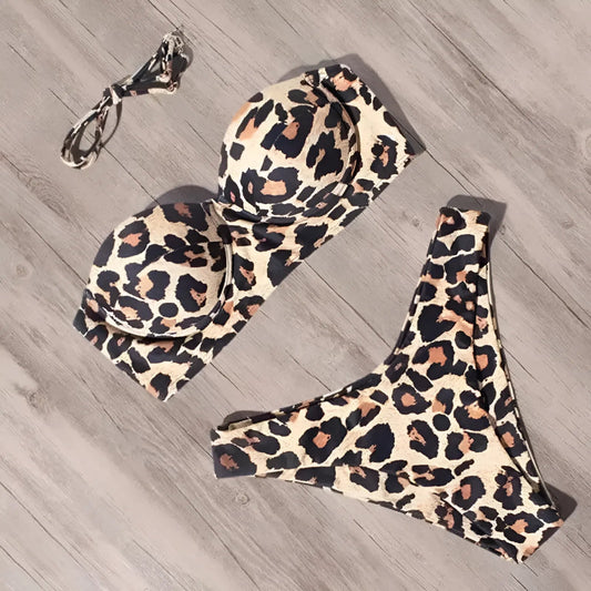 Maillot de bain deux pièces à imprimé léopard taille haute