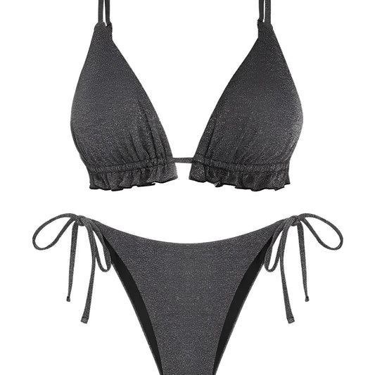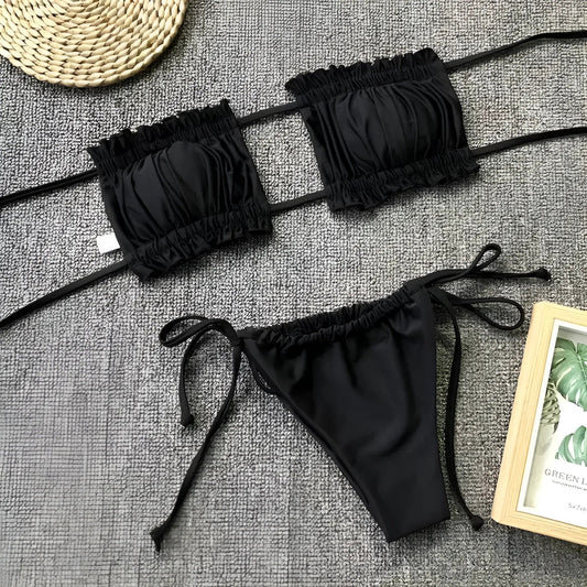 Maillot de bain deux pièces avec fronces et bretelles nouées