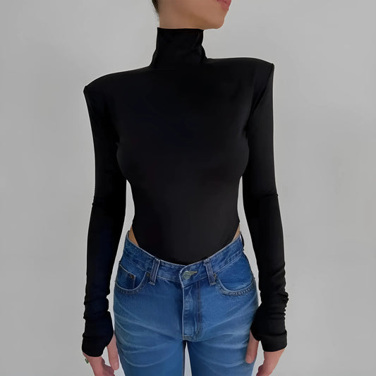Body à col roulé noir avec découpe sur une épaule
