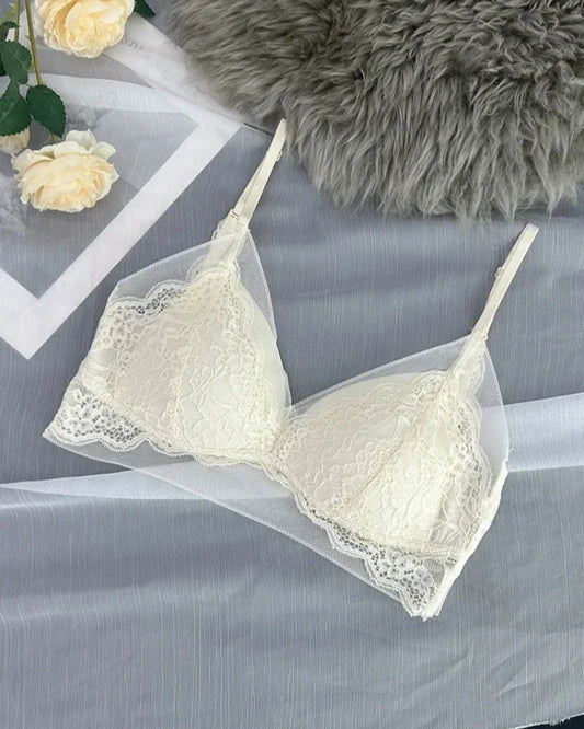 Soutien-gorge en dentelle transparente avec des bandes décoratives