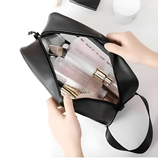Trousse de maquillage classique avec des fermetures éclair dorées